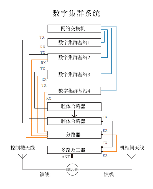 由于整個萬達(dá)廣場區(qū)域管理部門、使用單位多的特點,頻率資源少的現(xiàn)狀,將本系統(tǒng)設(shè)計成4個信道的數(shù)字系統(tǒng),可以同時滿足8個語音的通話時隙,提高了語音通話的質(zhì)量,也增加了系統(tǒng)的實際運(yùn)用能力。